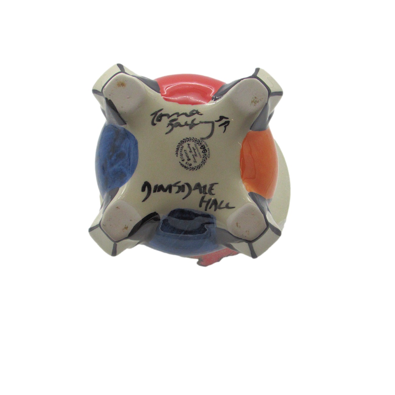 Personally signed on the base by the designer Lorna Bailey. As well as having the Old Ellgreave Pottery backstamp.