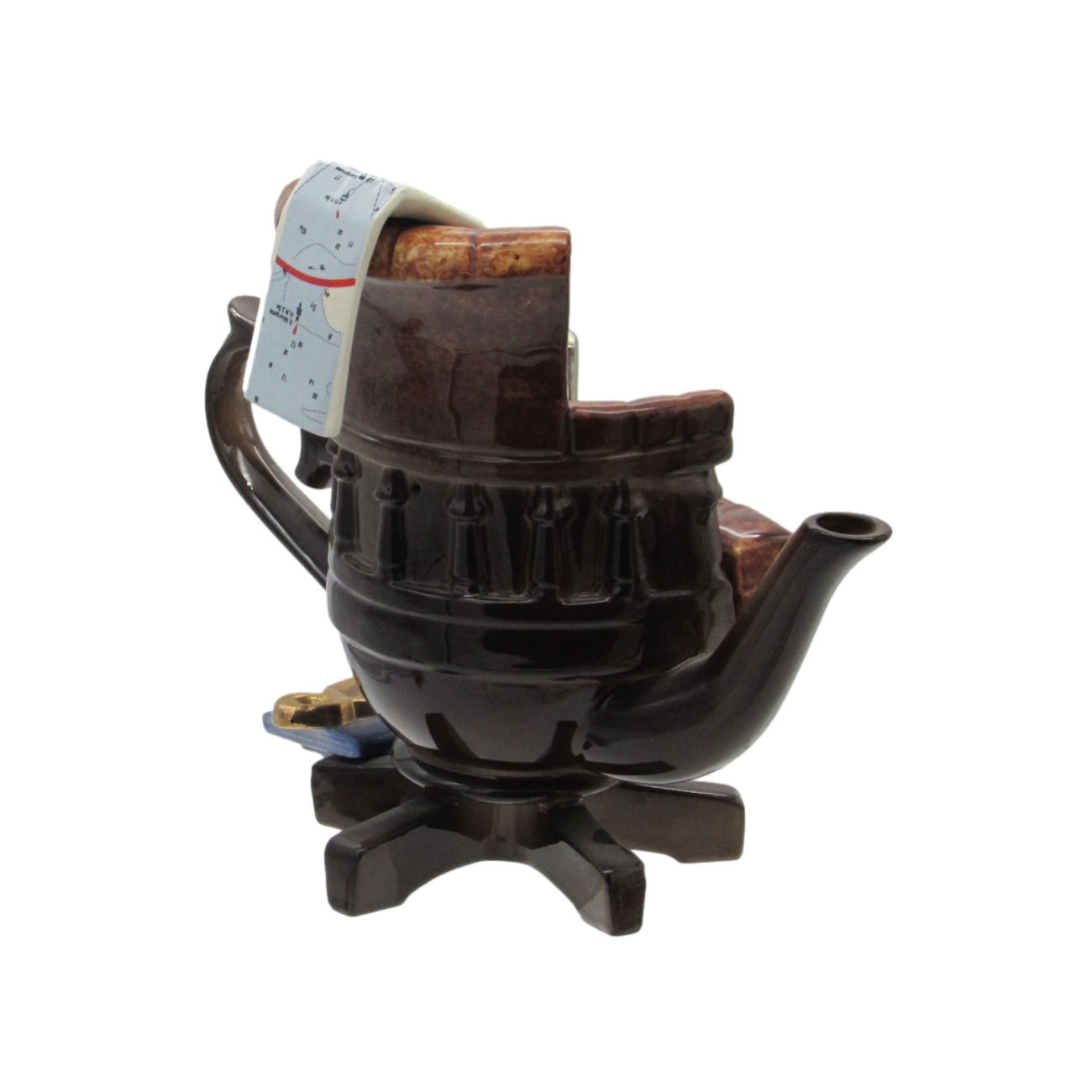 Richard Parrington is well known for his quirky, highly detailed sculptural teapots. This one is shaped like a traditional captain’s chair and includes nautical-themed elements sat on the chair such as: