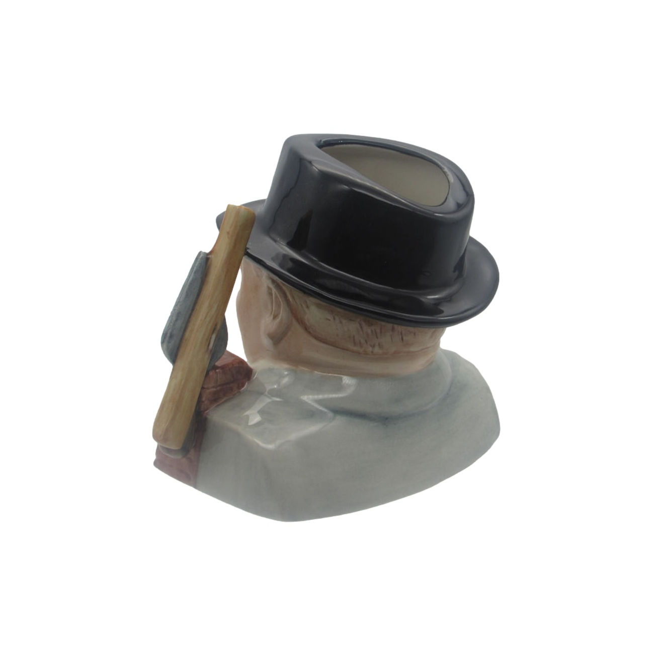 A Winston Churchill Toby Jug Bricklayer Design. Depicting Churchill as a Bricklayer. One of his many pastimes. With the handle in the shape of a building trowel and spirit level.
